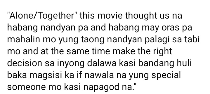 Kapamilya Online World On Twitter Alone Together This Movie Thought Us Na Habang Nandyan Pa And Habang May Oras Pa Mahalin Mo Yung Taong Nandyan Palagi Sa Tabi Mo And At The Same