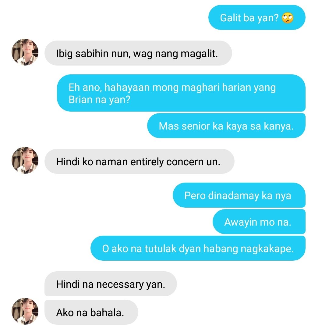 Nagkakape habang nagagalit. Humalumbaba ako habang nakasunod ang tingin sa kanila. Gusto kong manapak ng mga magnobyo. Noong nilibre kita ng pizza o nang palambing mong pinalo ang braso ko dahil inasar kita habang nanonood ng sine at noong tinawag mo akong little brother habang nagkakape.